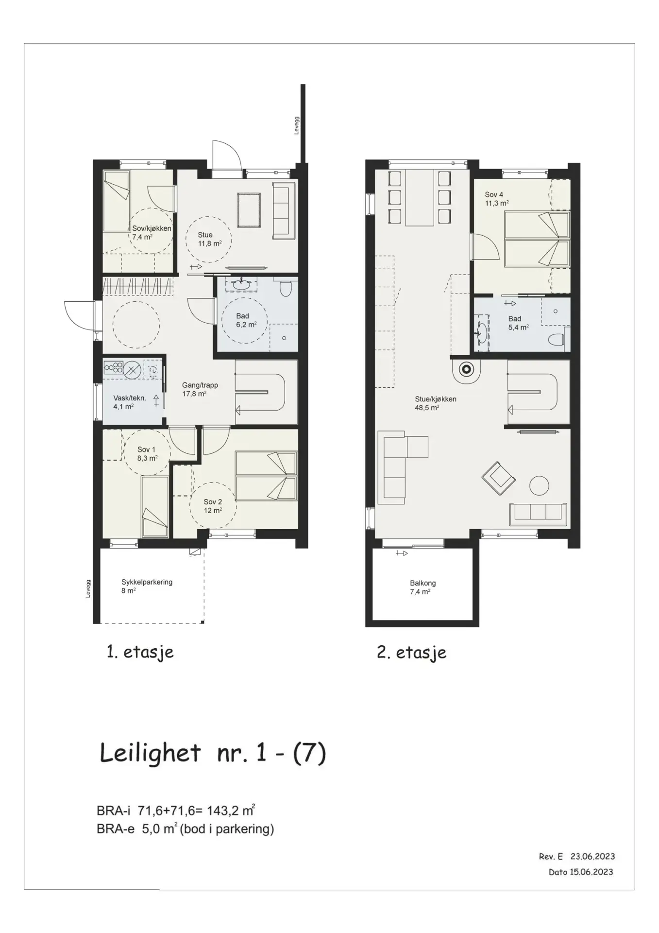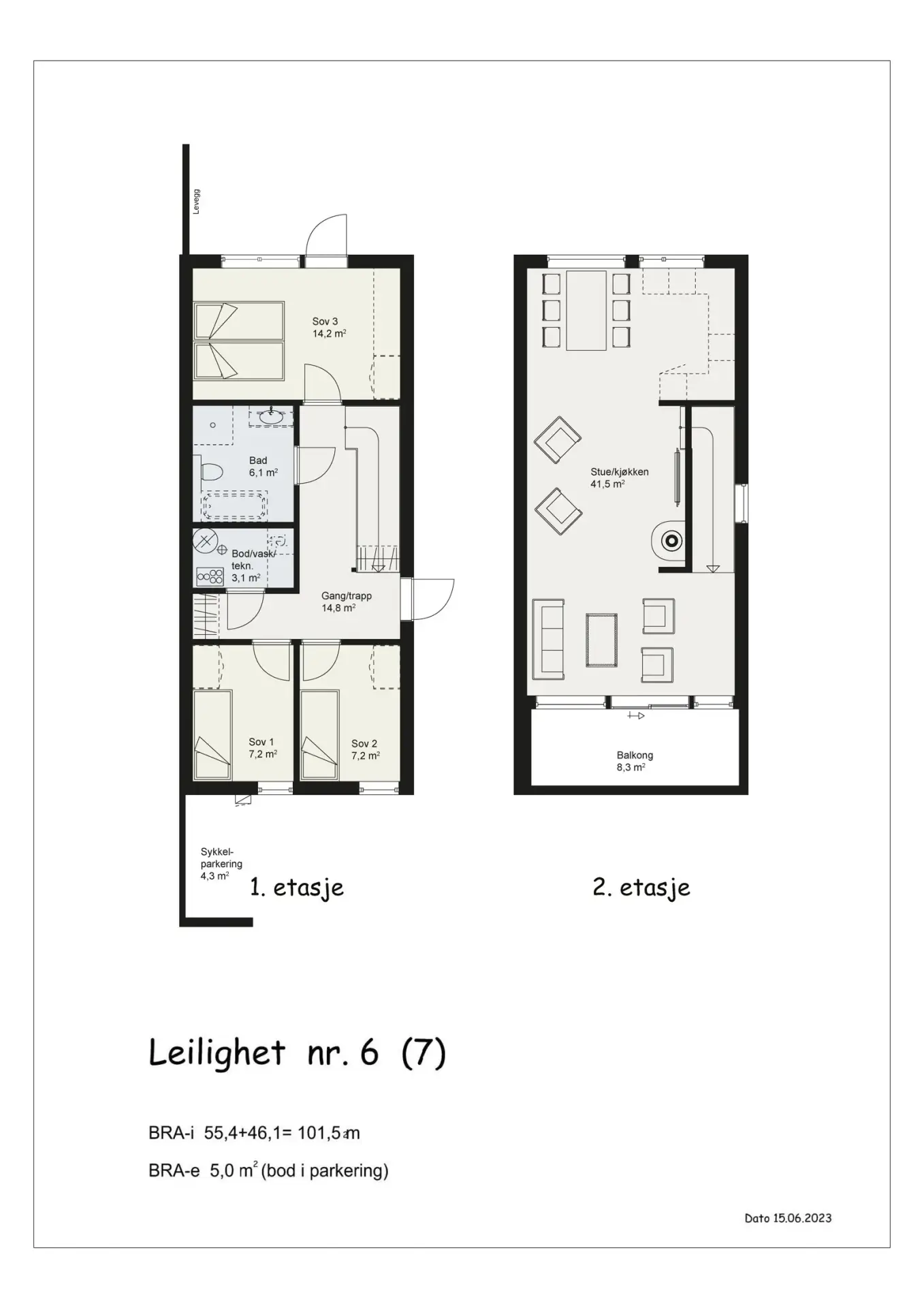 For nærmere informasjon om innhold se vedlagte tegninger og tekniske beskrivelse. Det opplyses om at 3D og 2D-tegninger er illustrasjoner og at så vel uteareal som innvendig areal kun er illustrert og ikke på noen måte danner grunnlaget for avtalen eller er bindende for selger. For data som danner grunnlaget for avtalen se tekniske beskrivelse vedlagt i salgsoppgaven.