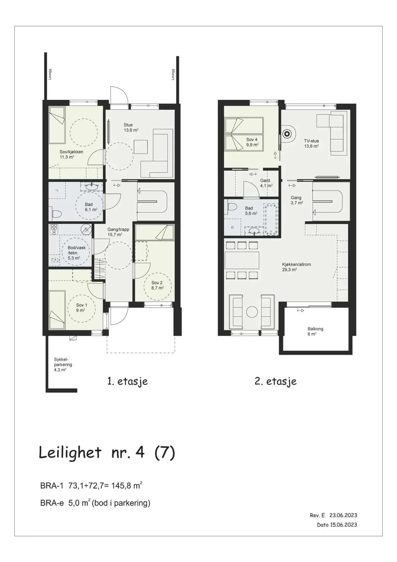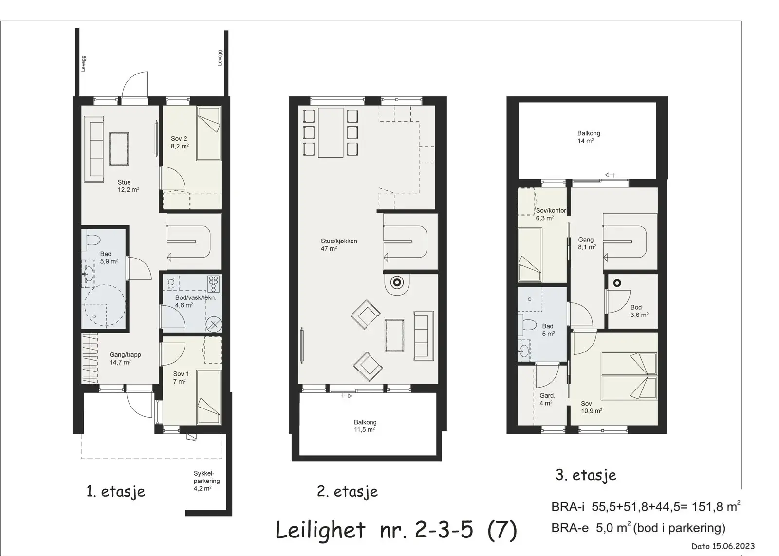 – BRA-i (internt bruksareal): 102 kvm – 152 kvm